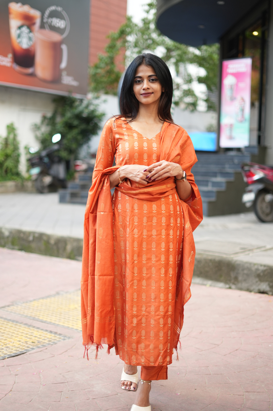 Embrace timeless tradition with our beautiful Banarasi Kurthi, featuring 3/4 sleeves, a straight pant, and a matching dupatta. The perfect outfit for every cultural occasion.