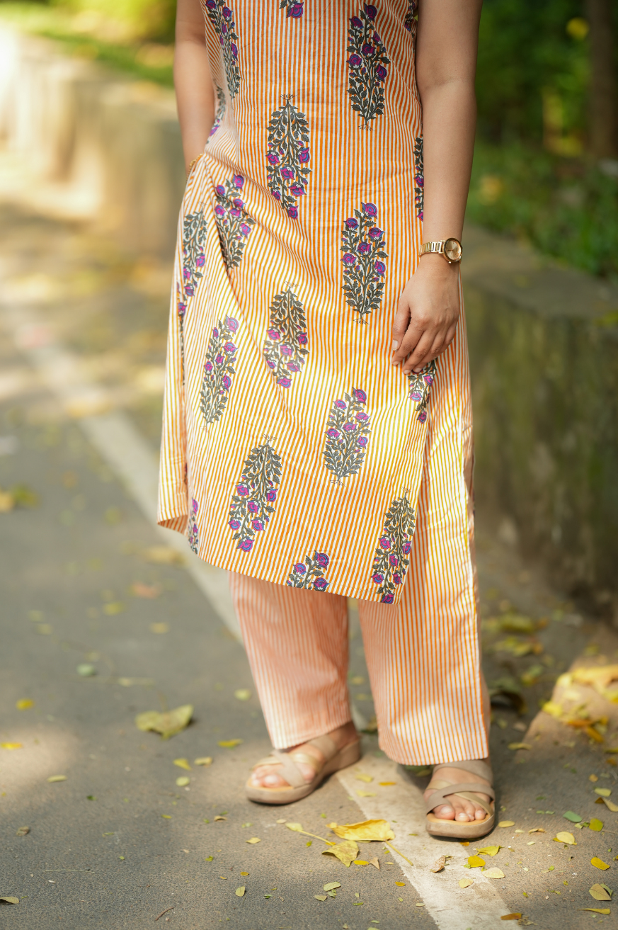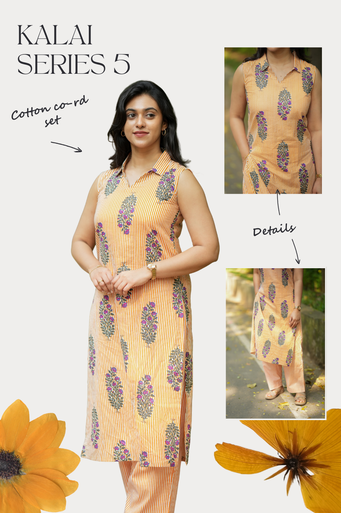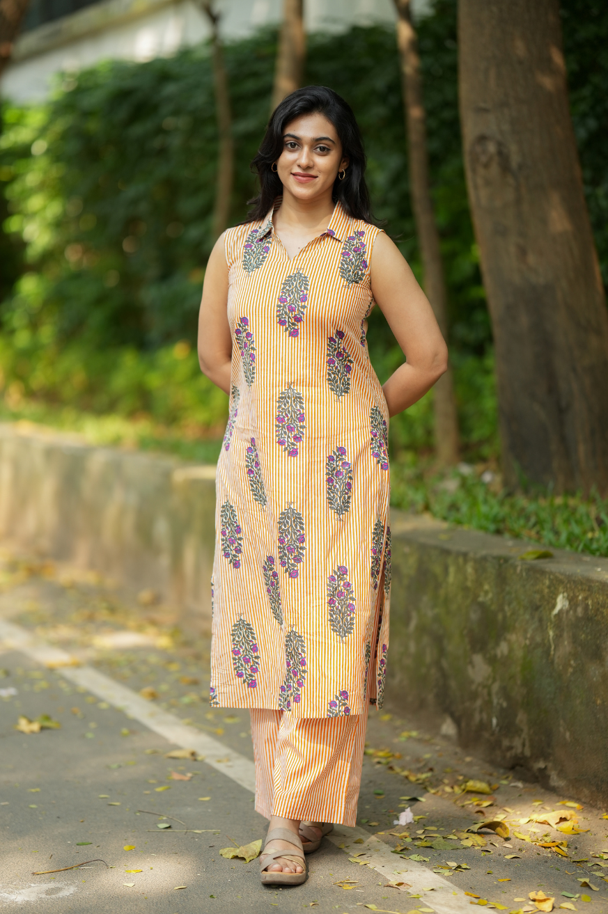 It’s a comfortable cotton co-ords set with striped pattern in floral and also comes with stripe pant