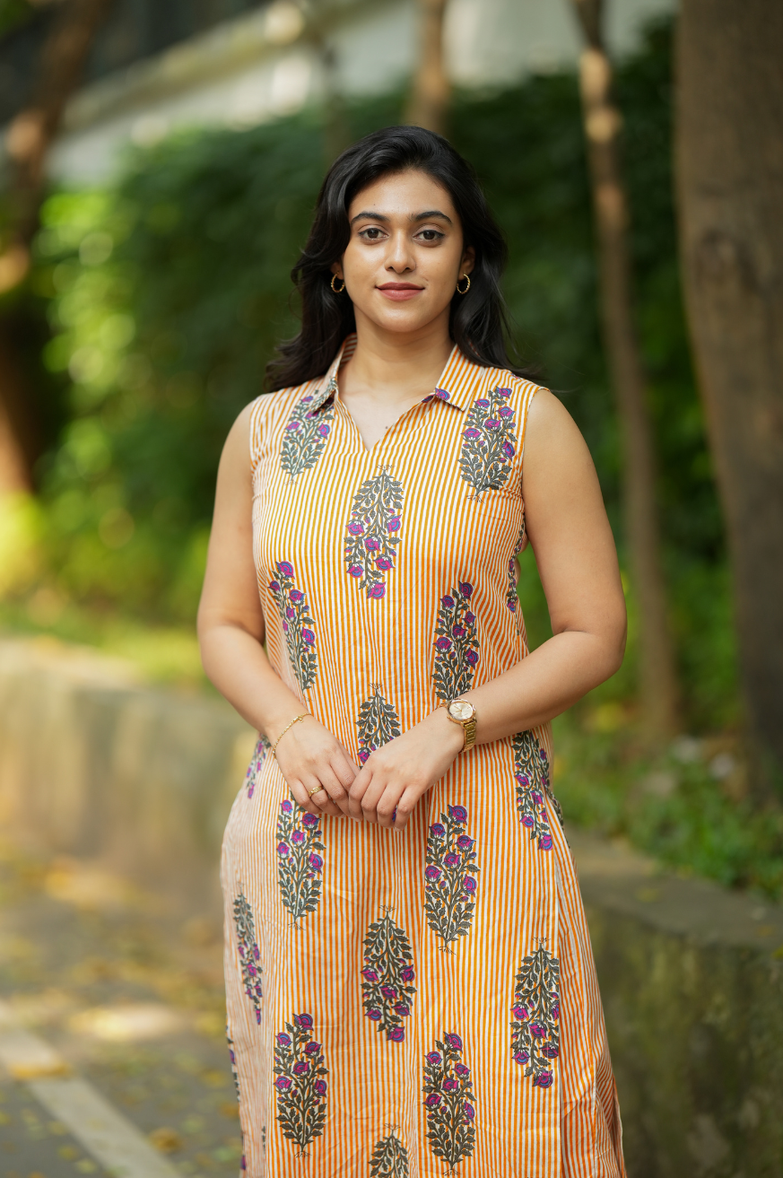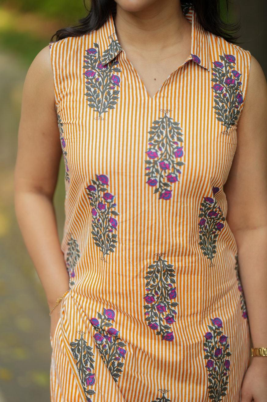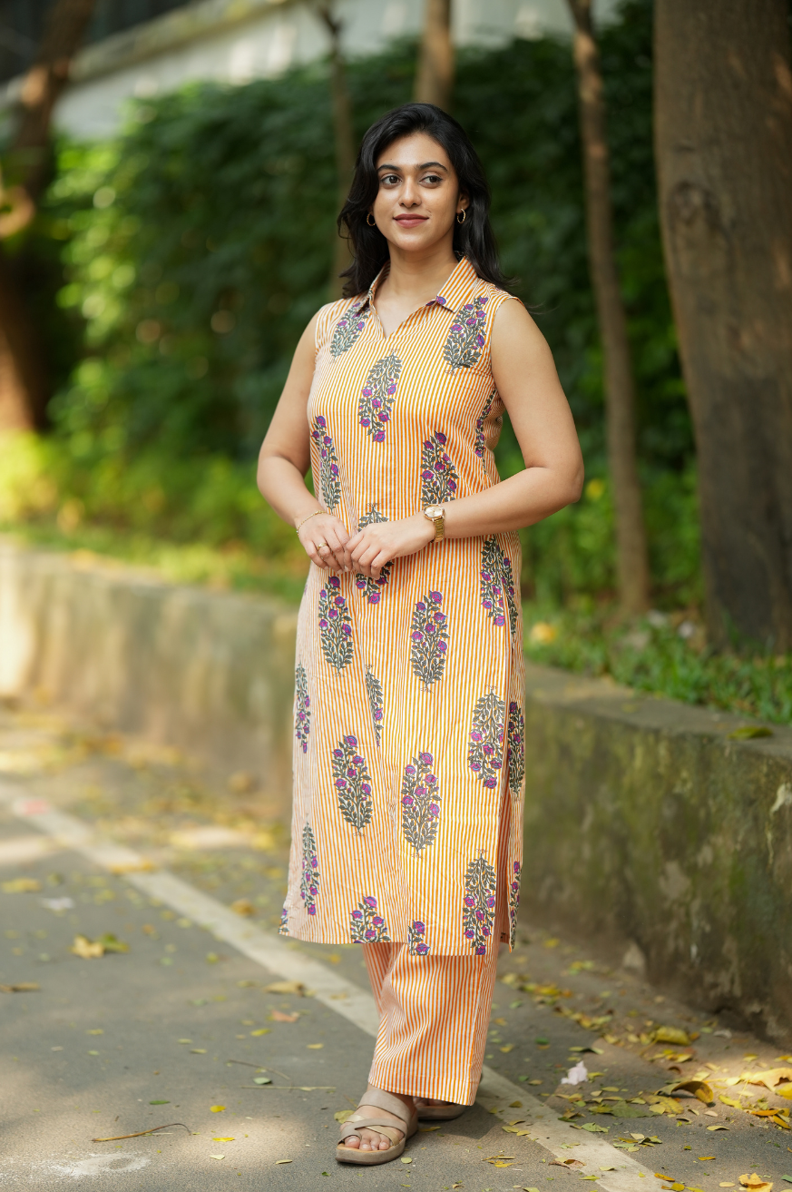 It’s a comfortable cotton co-ords set with striped pattern in floral and also comes with stripe pant