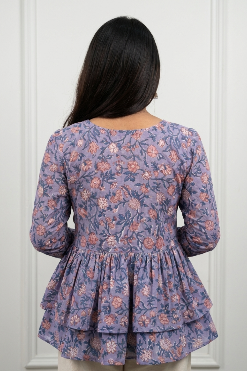Designed as a peplum top with elegant 3/4th sleeves.